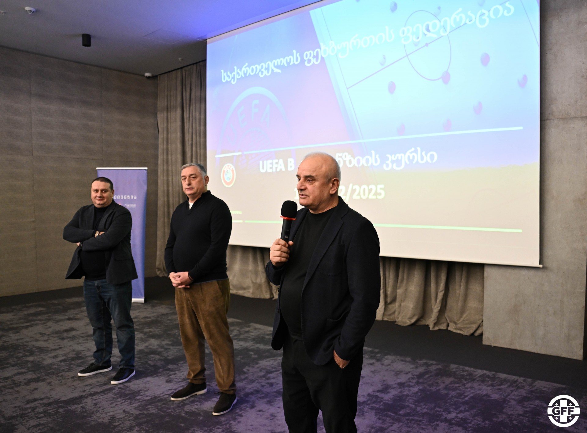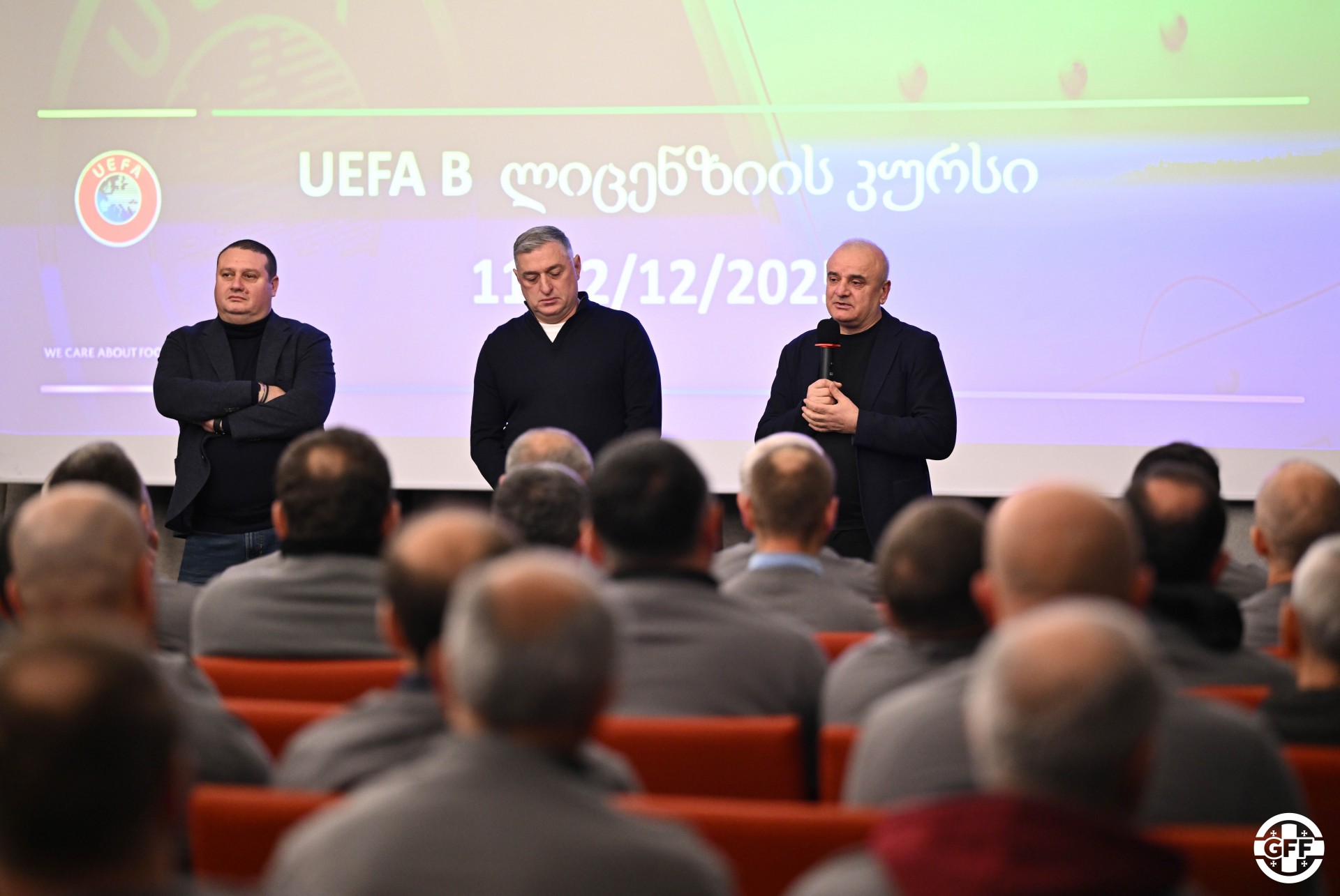 კურსის დაწყებმადე, უეფას B ლიცენზიის მქონე მწვრთნელებს სფფ-ის პირველმა ვიცე-პრეზიდენტმა კახა ჭუმბურიძემ, ვიცე-პრეზიდენტმა ზაზა ზამთარაძემ და ტექნიკურმა დირექტორმა გოჩა თამაზაშვილმა მიმართეს და წარმატება უსურვეს.