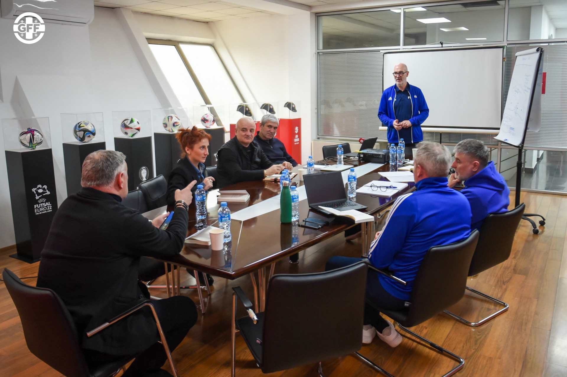 შეხვედრას ესწრებოდნენ სფფ-ის გენედალური მდივანი დავით მუჯირი, პირველი ვიცე-პრეზიდენტი კახა ჭუმბურიძე, ტექნიკური დირექტორი გოჩა თამაზაშვილი და სფფ-ის აკადემიების სპორტულის მიმართულების ხელმძღვანელი ზვიად ჯელაძე. ასევე ფიფას ტალანტების განვითარების სქემის რეგიონული კოორდინატორი მარიანს პაჰარსი, ფიფას ტალანტების აღმოჩენის გლობალური ხელმძღვანელი სტეფენ მოროუ და მწვრთნელი კირან ტონერი.
