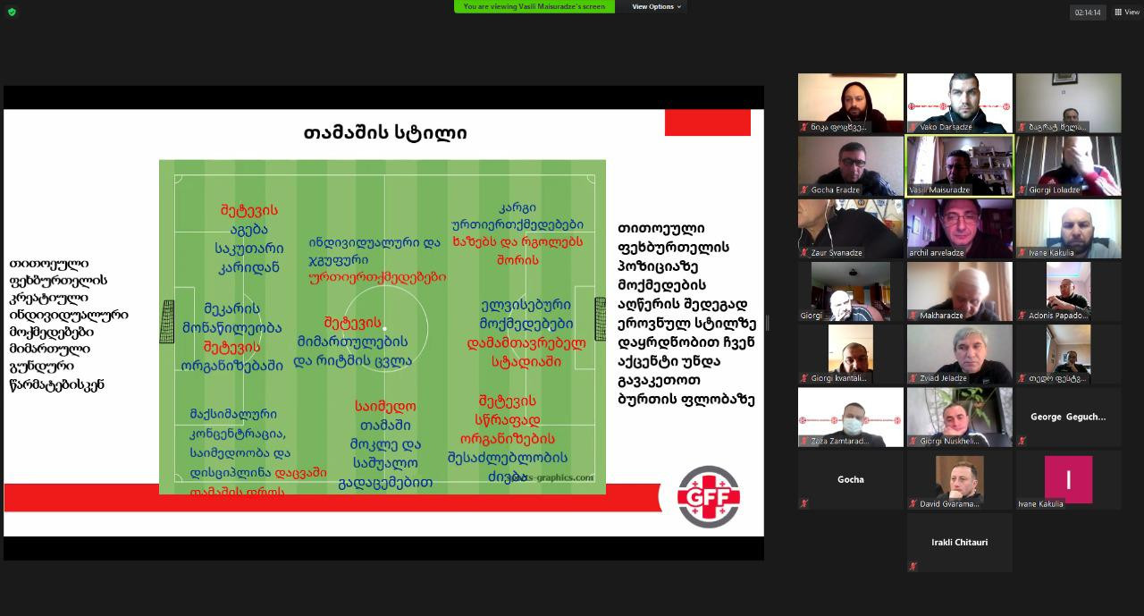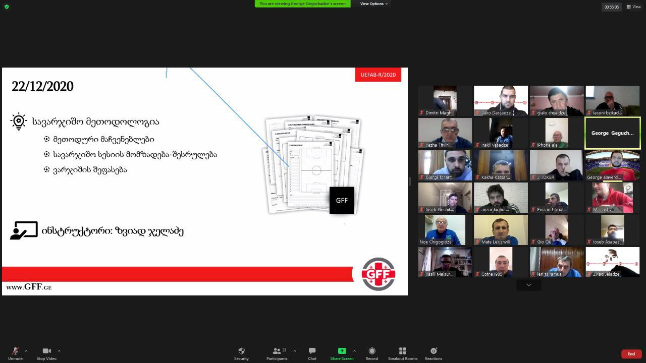 საქართველოს ფეხბურთის ფედერაციის ტექნიკური დეპარტამენტის ორგანიზებით, უეფას მწვრთნელთა განათლების B და A ლიცენზიების მფლობელი მწვრთნელებისთვის Refresh კურსი გაიმართა. Covid 19-ის პანდემიის გამო სასწავლო მოდული ონლაინ რეჟიმში ჩატარდა