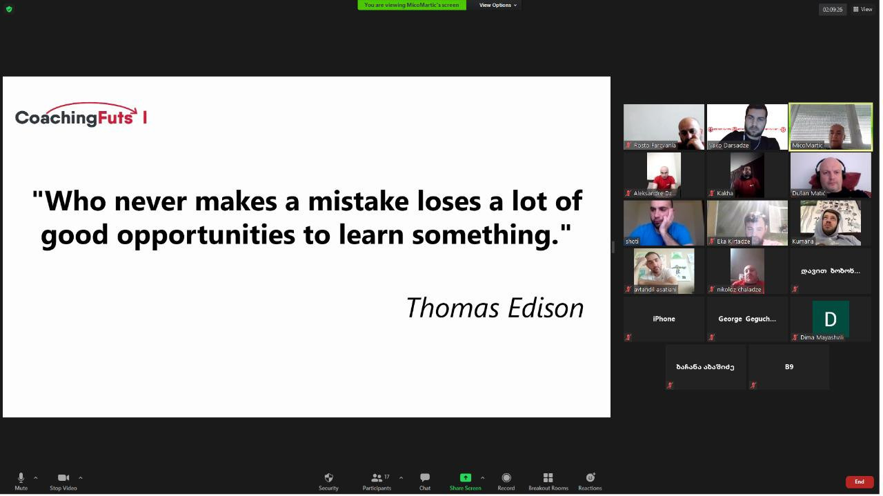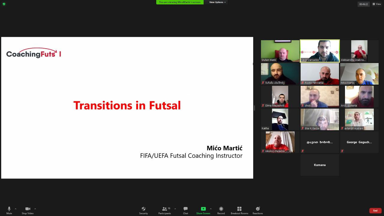 Covid 19-ის პანდემიის გამო ფუტსალის B ლიცენზიის მეექვსე მოდული ონლაინ რეჟიმში გაიმართა. აღნიშული მოდულის მთავარი თემები ნეგატიურ გადასვლა, ლიდერობა და ფიტნესი იყო.