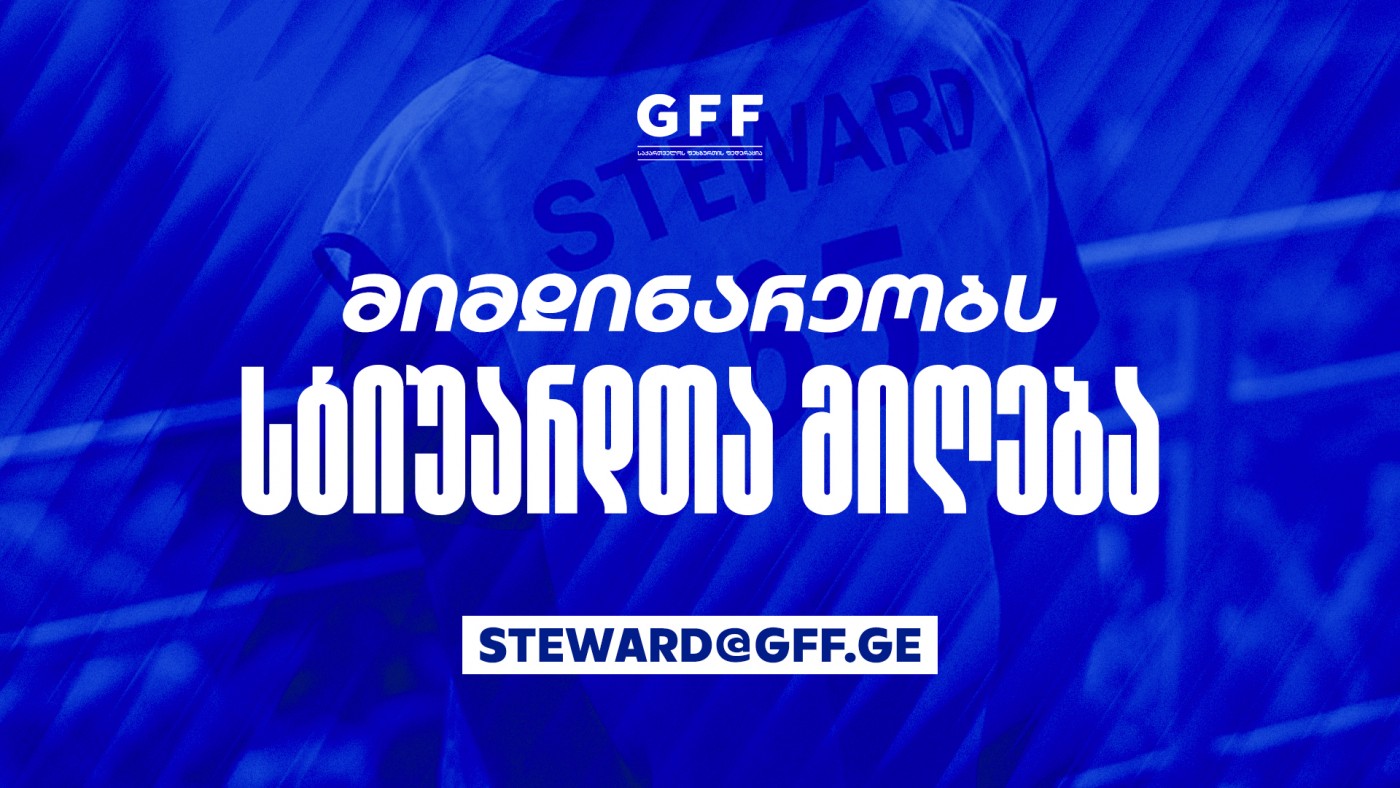 საქართველოს ფეხბურთის ფედერაცია სტიუარდთა მიღებას აცხადებს. დაინტერესებულ კანდიდატებს შესაძლებლობა ექნებათ იმუშაონ თავისუფალი გრაფიკით და უშუალო მონაწილეობა მიიღონ სფფ-ის მიერ ორგანიზებულ ღონისძიებებზე, ეროვნული და ასაკობრივი ნაკრებების ოფიციალურ და ამხანაგურ მატჩებზე.
