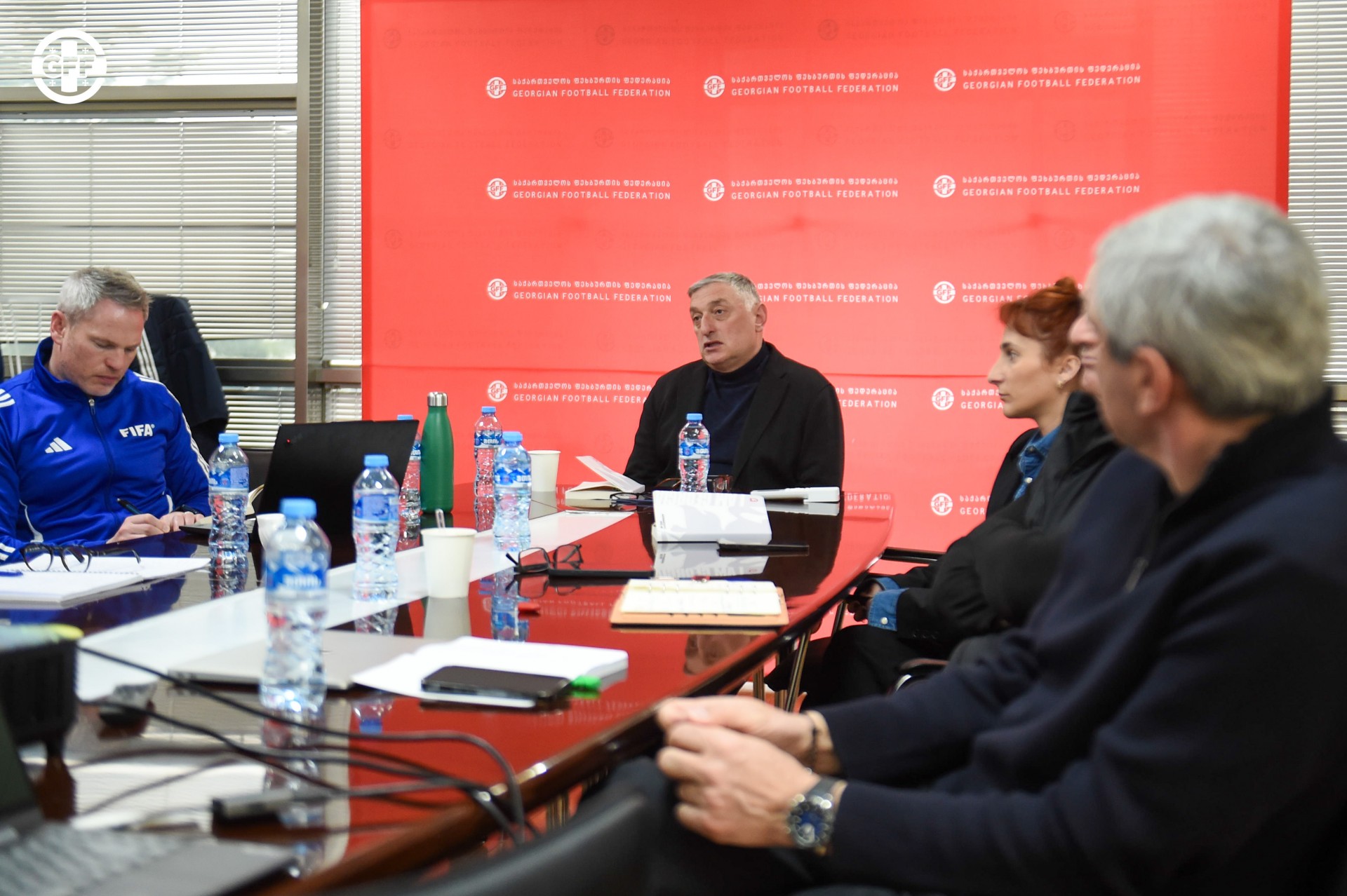შეხვედრას ესწრებოდნენ სფფ-ის გენედალური მდივანი დავით მუჯირი, პირველი ვიცე-პრეზიდენტი კახა ჭუმბურიძე, ტექნიკური დირექტორი გოჩა თამაზაშვილი და სფფ-ის აკადემიების სპორტულის მიმართულების ხელმძღვანელი ზვიად ჯელაძე. ასევე ფიფას ტალანტების განვითარების სქემის რეგიონული კოორდინატორი მარიანს პაჰარსი, ფიფას ტალანტების აღმოჩენის გლობალური ხელმძღვანელი სტეფენ მოროუ და მწვრთნელი კირან ტონერი.